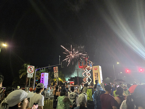 12月14日、大会当日の朝、スタート直前には土砂降りの雨に見舞われ、参加者全員がずぶ濡れになるという波乱の幕開けとなりました。しかし、スタートの花火が上がる頃には雨も弱まり、走り始めてからは昨年のような強い日差しもなく、むしろ走りやすいコンディションとなりました。